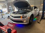 An engine flush is a chemical cleaning process performed before an oil change. A specially formulated cleaner is added to the old engine oil and run through the system for a short time at idle. This dissolves sludge, varnish, and carbon deposits inside the crankcase, oil galleys, and valve train. Afterward, the old oil and contaminants are drained, and fresh oil + filter are installed.